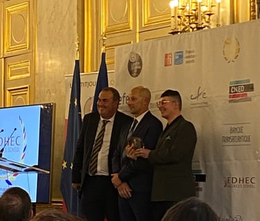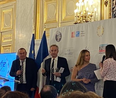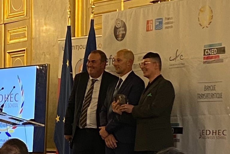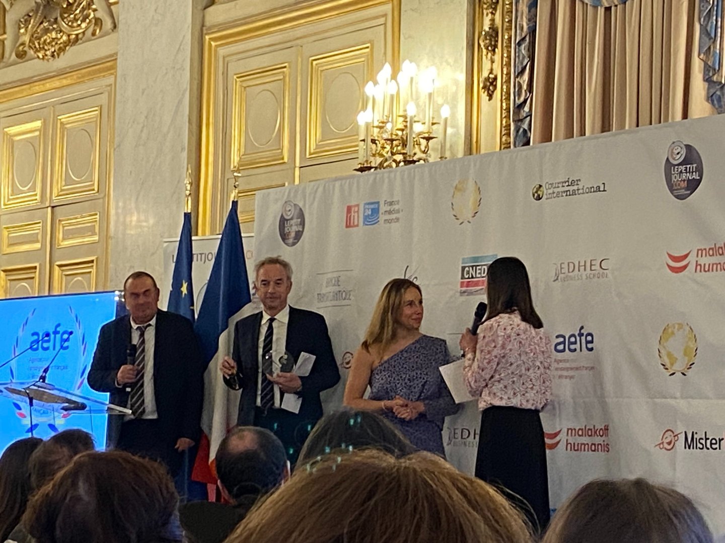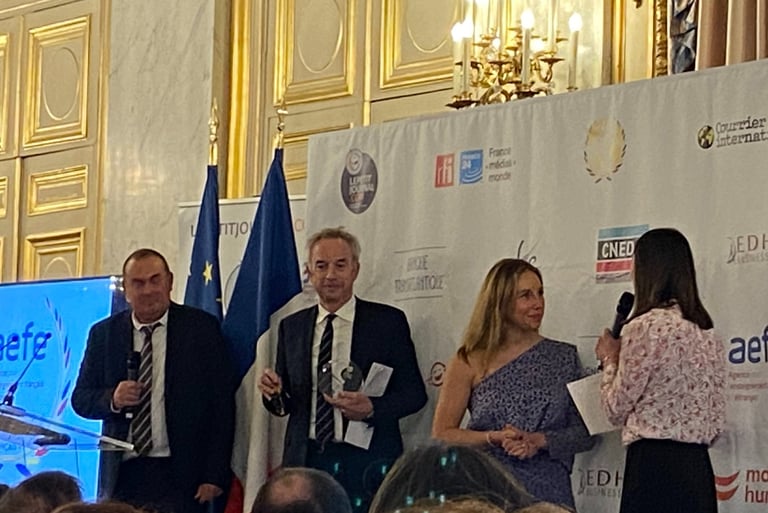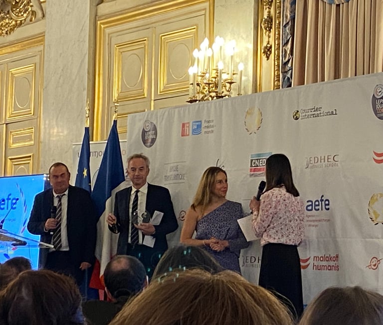 La cérémonie de remise des trophées s'est déroulée au Ministère de l'Europe et des Affaires étrangères en présence d'Olivier Becht, ministre délégué en charge des Français de l'étranger et d'Hervé Heyraud, président-fondateur des éditions lepetitjournal.com.